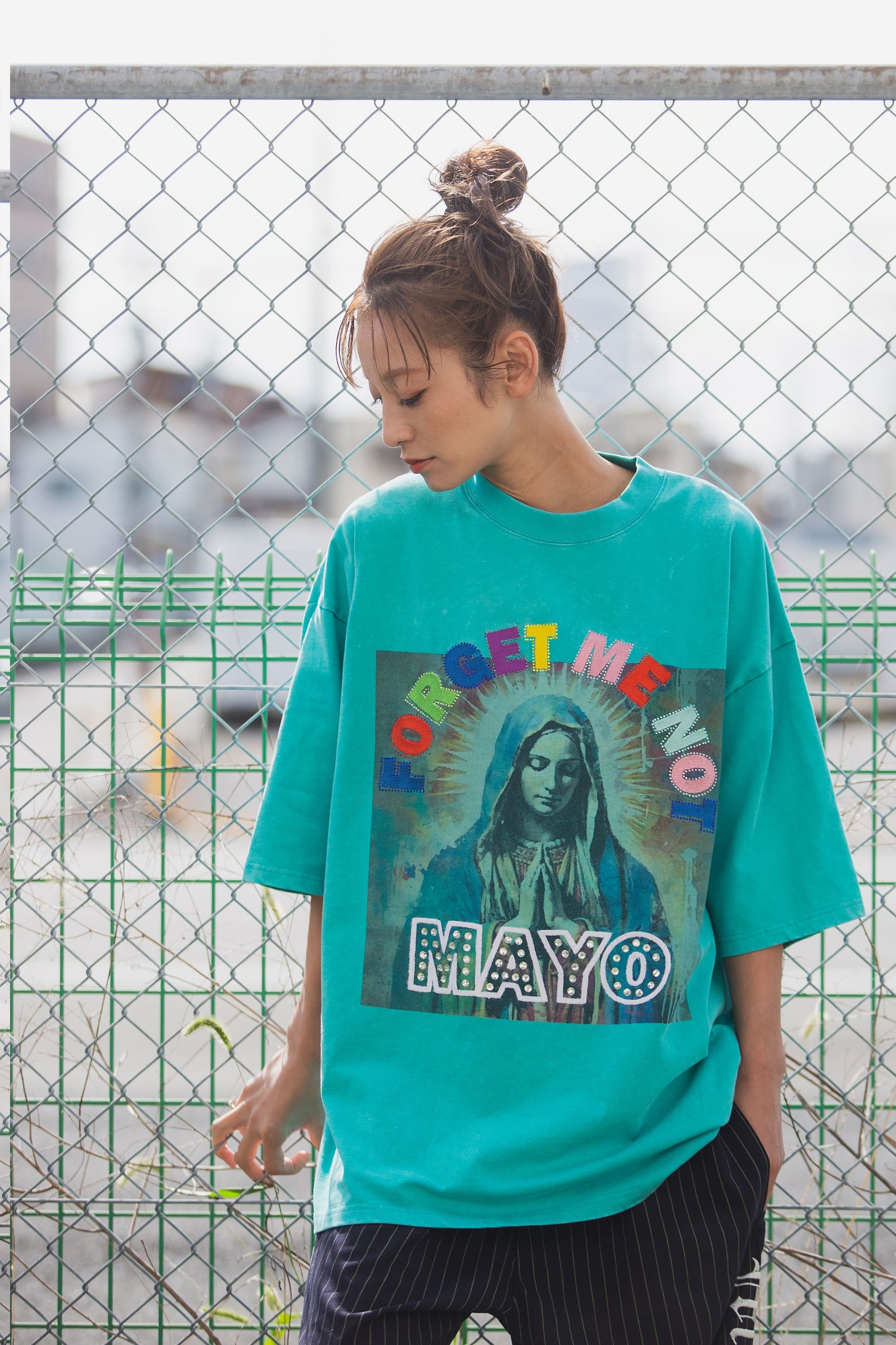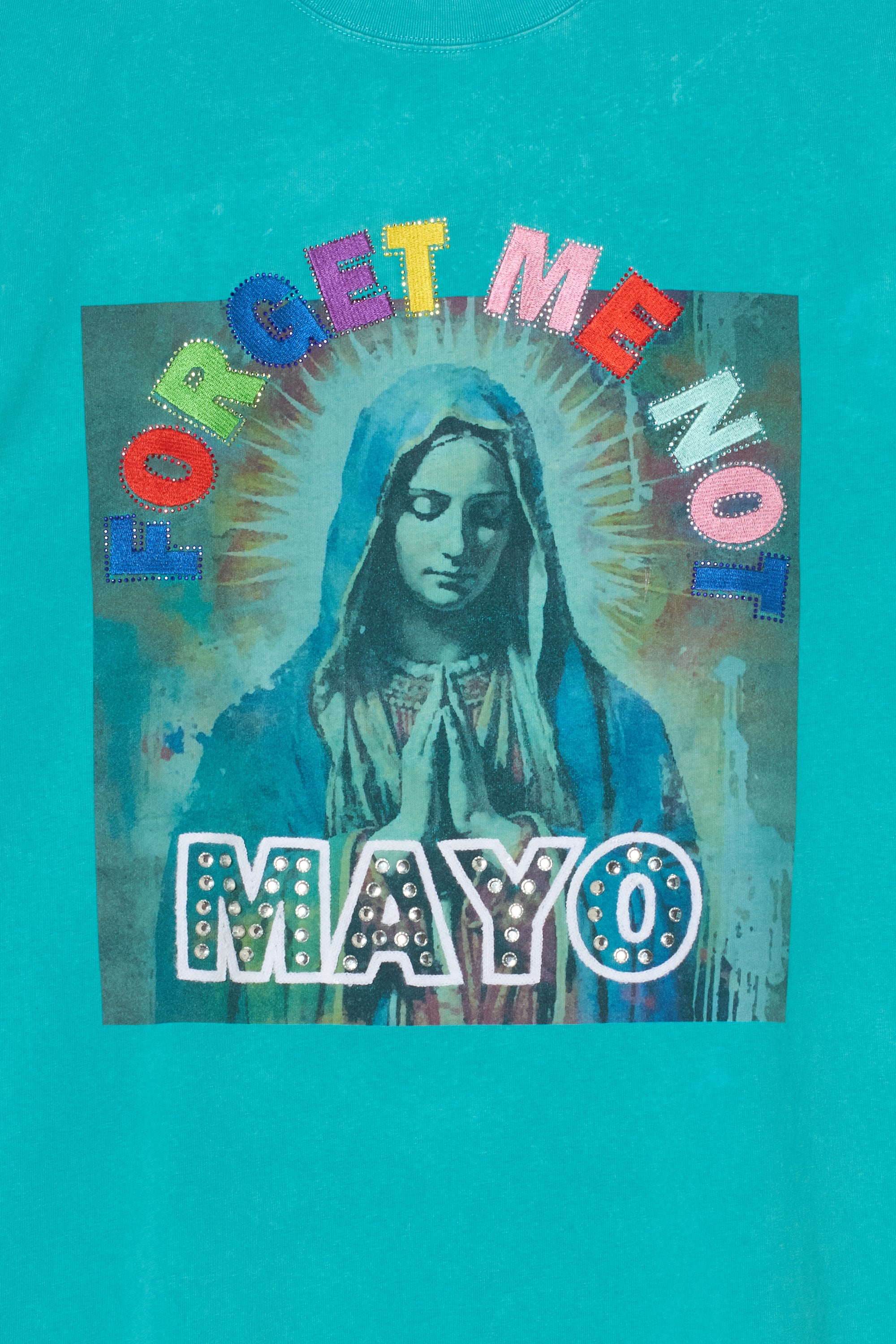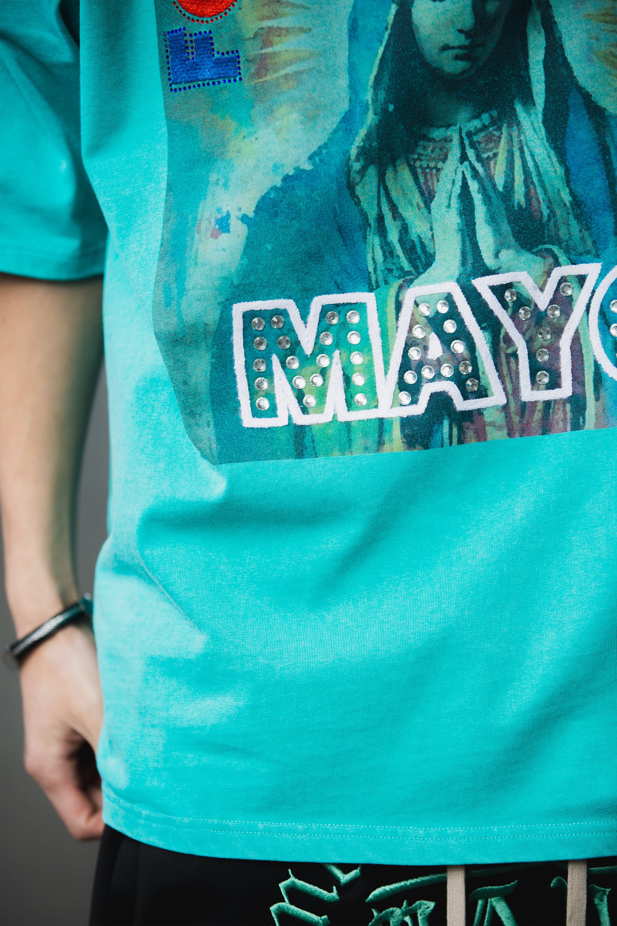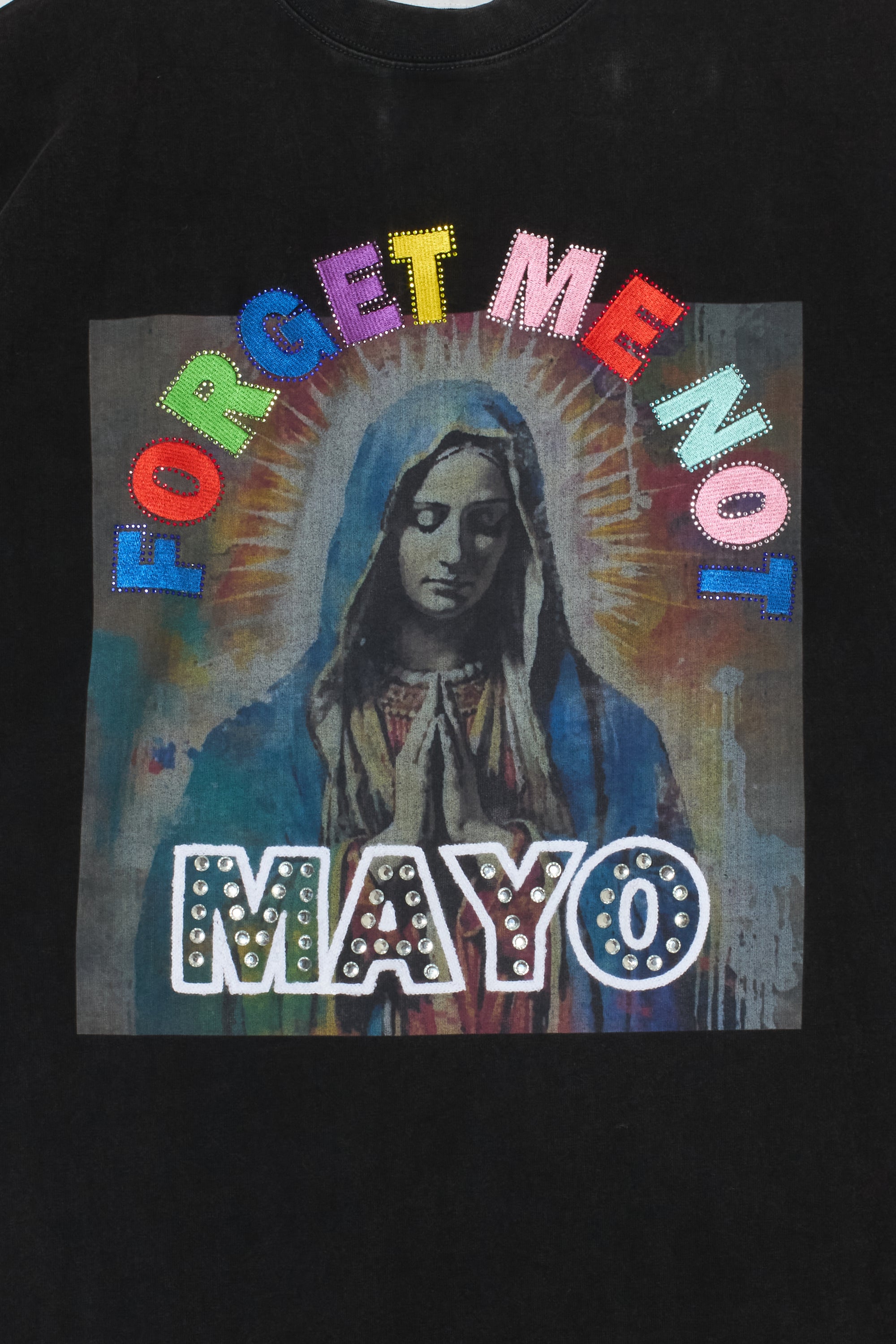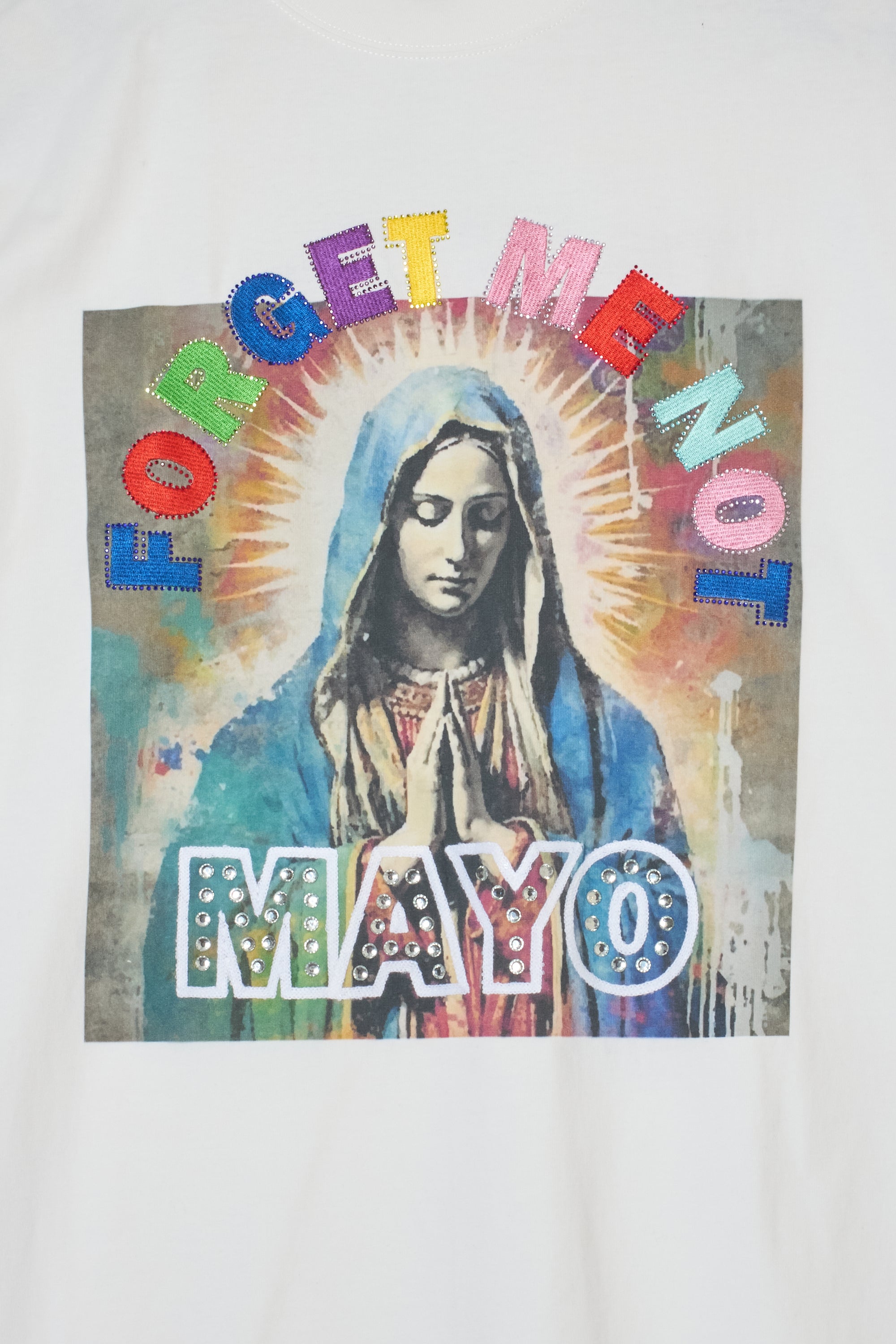 MARIA EMBROIDERY & PRINT RHINE STONE SHORT SLEEVE TEE