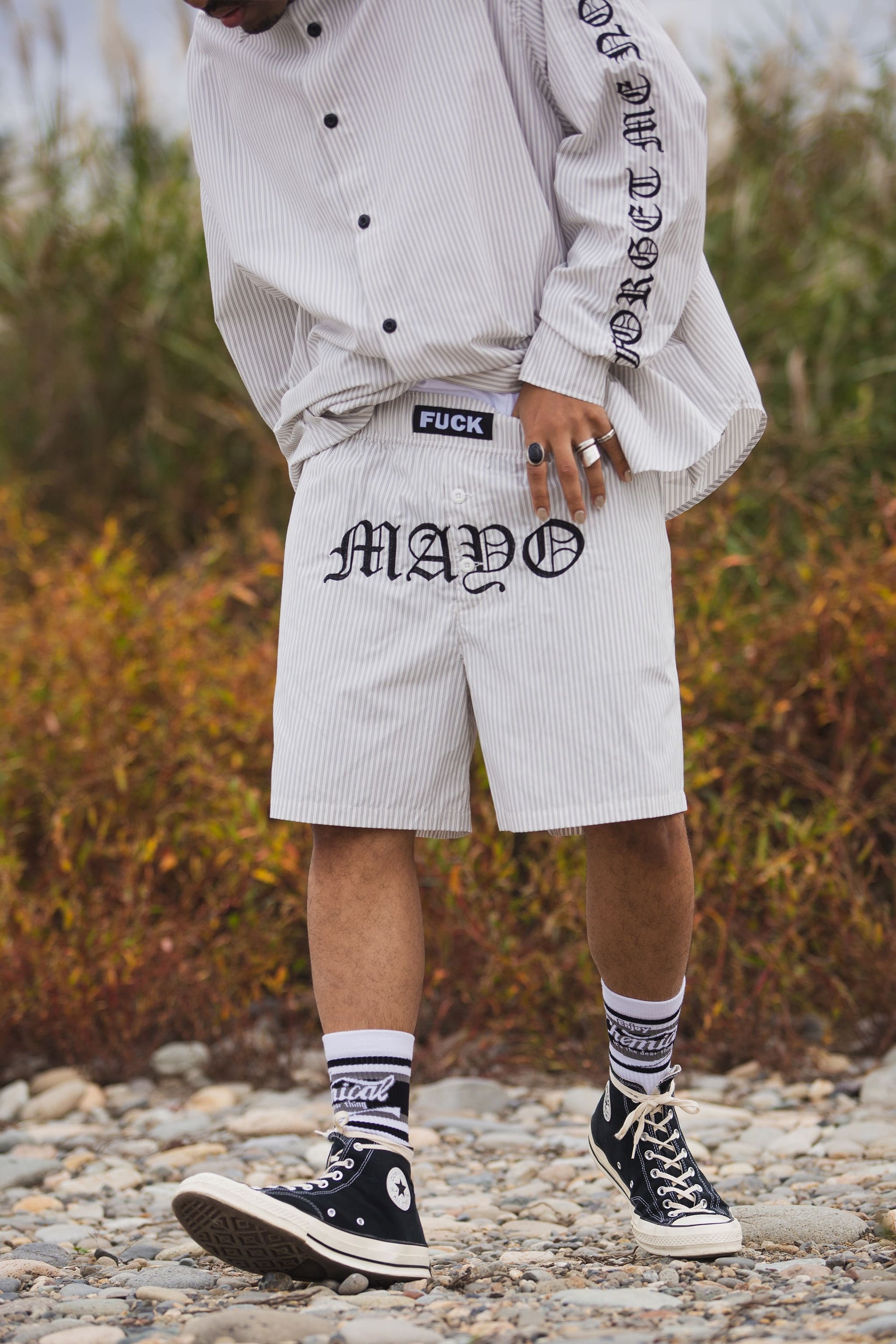 MAYO MESSAGE EMBROIDERY GAME SHORTS