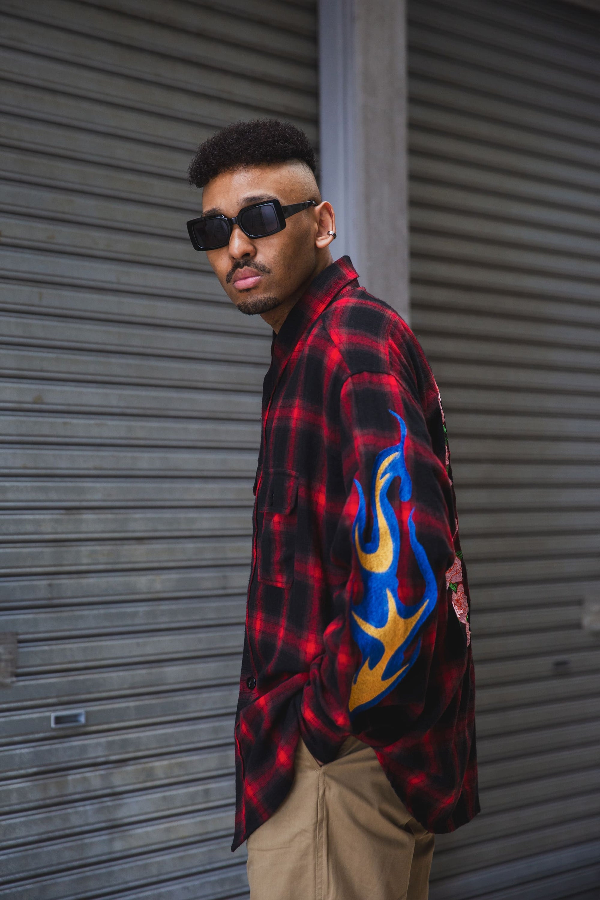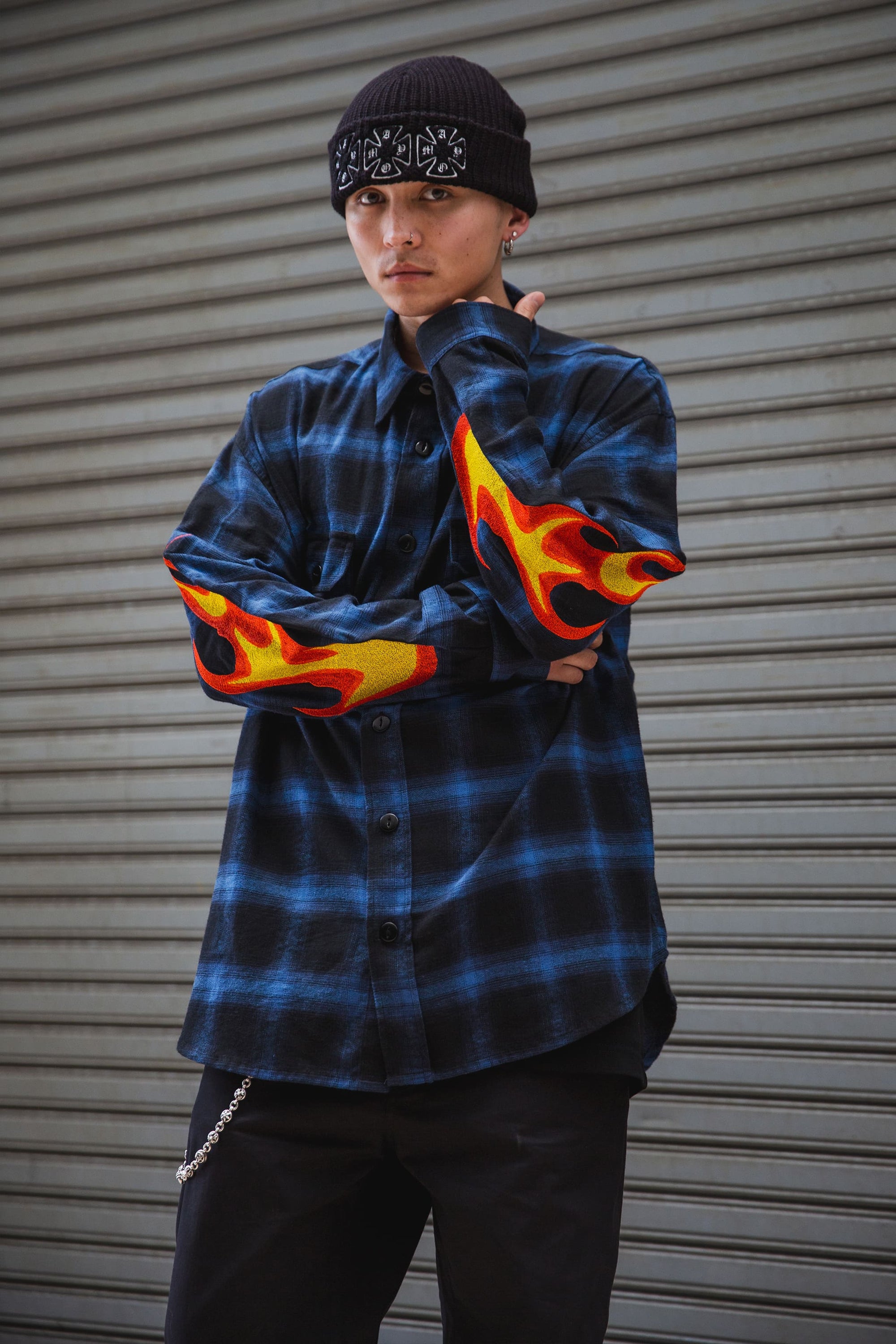 FIRE EMBROIDERY CHECK SHIRT JKT